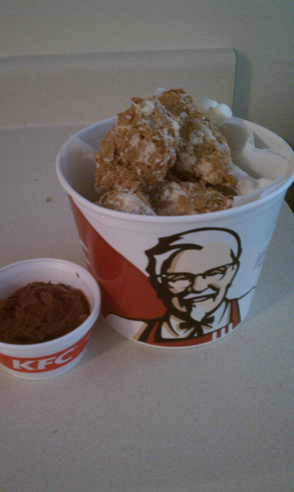 My friend Chelsea Lords showed me this on pinterest yesterday and we both decided to try it out for April Fools day today. The actual one looks WAY better than mine but it was a lot of fun to take it to my parents house for dinner. The little neighbor girls wouldn't even try it :) ha ha ha. although it only somewhat looks like chicken watching my mom and Clair eat it was hilarious, It looked completely like they were eating chicken right off the bone. Thanks Chels for the idea!